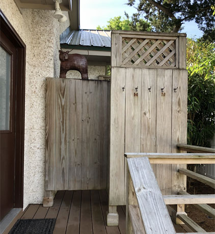 The namesake of Sunny Showers Cottage is the outdoor shower just 3 steps outside the back door. Completely private with hot (in fact, Sunny Showers Cottage has 2 water heaters, so there is always plenty of hot water) and cold water. This is the best outdoor shower on the Island. When our family stays Sunny Showers, we only use the outdoor shower. It is much more refreshing to finish showering and dry off in the open air rather than a steamy bathroom. Once you’ve tried our Sunny Shower, it will be hard to go back to showering indoors.